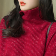• 宝贝名称: 红色毛衣女亮丝闪闪羊绒衫高领秋冬加厚宽松慵懒风外穿2020年新款
