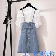 • 宝贝名称: 【可选顺丰配送】2020新款小清新韩版一字肩上衣背带裙子大码套装