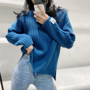 • 宝贝名称: 秋冬新款竖条纹高领百搭毛衣女宽松慵懒风套头纯色侧开叉针织衫潮