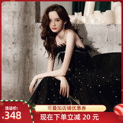• 宝贝名称: 黑色高端晚礼服裙女2020新款抹胸羽毛轻奢主持人宴会气质高级质感