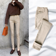 • 宝贝名称: 韩国米色牛仔裤女冬季加绒加厚高腰修身显瘦小脚韩版休闲女士裤子