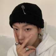 • 宝贝名称: 秋冬韩版ins复古黑色铁环个性帽子百搭保暖针织毛线帽男女学生潮