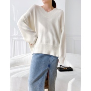 • 宝贝名称: V领毛衣女秋冬新款宽松慵懒风休闲套头白色针织外穿软糯显瘦上衣
