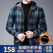 • 宝贝名称: 应大城冬季男士加绒休闲开衫外套宽松加厚拉链连帽毛衣格子针织衫