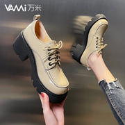 • 宝贝名称: 真皮小皮鞋女松糕厚底粗跟系带漆皮深口高跟爆款单鞋2021年春新款