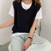 • 宝贝名称: 2020秋冬黑色圆领无袖针织马甲短款小背心女学生外搭坎肩毛衣外穿