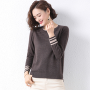 • 宝贝名称: 2021春款圆领短款上衣百搭简约针织衫打底衫女宽松条纹毛衣女拼色