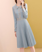 • 宝贝名称: 法式娃娃领撞色花边收腰显瘦连衣裙女2021春秋新款洋气中长百褶裙