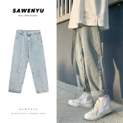 • 宝贝名称: 春季牛仔裤男潮流韩版宽松百搭港风浅色裤子男情侣休闲帅气老爹裤