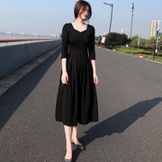 • 宝贝名称: 黑色中长款连衣裙V领显瘦气质长裙2021春装新款赫本小黑裙礼服女