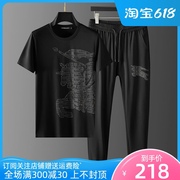 • 宝贝名称: 欧洲站高端印花烫钻男士长裤短袖两件套潮流透气百搭休闲运动套装