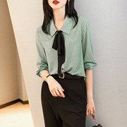 • 宝贝名称: 源头2021早春新款上衣女条纹雪纺衫衬衫女设计感衬衣长袖女士