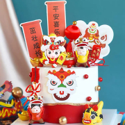 • 宝贝名称: 宝宝周岁满月舞狮蛋糕插牌 儿童生日派对甜品台国风中式烘焙装饰