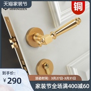 • 宝贝名称: 纯铜门锁室内家用静音美式轻奢金色门锁北欧实木门把手分体门锁