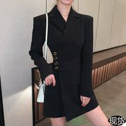• 宝贝名称: 新款春装baby明星同款设计感金属扣西装裙连衣裙收腰小个子短裙女