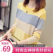 • 宝贝名称: 尚功沐爆款推荐2021春秋季新款韩版宽松条纹女神时尚拼色针织衫女
