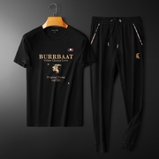 • 宝贝名称: 欧洲站轻奢骑士马刺绣21夏潮男丝光短袖圆领搭配长裤休闲运动套装