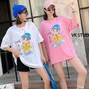 • 宝贝名称: 欧洲站新款钉珠印花卡通牛2021夏季时尚短袖宽松慵懒风中长款T恤