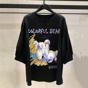 • 宝贝名称: 年哥弟新特2021夏季新款宽松圆领小熊卡通涂鸦字母印花五分袖T恤