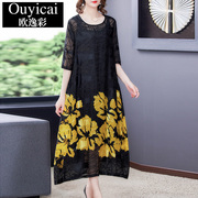 • 宝贝名称: 2021年夏季新款胖妈妈遮肚显瘦连衣裙印花气质宽松大码女装长裙子