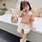 • 宝贝名称: 女童夏装洋气套装儿童夏季小童宝宝格子衬衫五分裙裤网红两件套潮