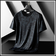• 宝贝名称: 冰丝T恤男士夏季薄款网眼镂空五分袖上衣印花潮牌圆领衣服短袖男
