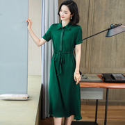 • 宝贝名称: 杭州真丝连衣裙大牌2021夏季新款高端纯色中长款短袖桑蚕丝衬衫裙