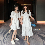 • 宝贝名称: 法式甜美初恋约会小裙子女夏白色方领显瘦大领口泡泡袖闺蜜连衣裙