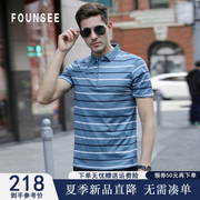 • 宝贝名称: 方仕桑蚕丝短袖T恤男士中年爸爸夏装商务休闲条纹翻领半袖polo杉