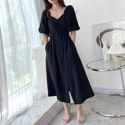 • 宝贝名称: 2021新款女装黑色短袖连衣裙夏天气质优雅方口领收腰显瘦中长裙潮