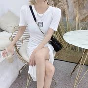 • 宝贝名称: 2021新款夏印花修身抽绳连衣裙女气质收腰显瘦褶皱开叉中长款裙子