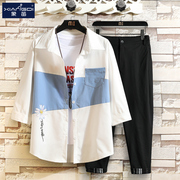 • 宝贝名称: 小雏菊短袖衬衫男潮牌ins个性帅气撞色拼接2021夏季新款休闲套装