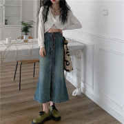 • 宝贝名称: 微复古着重工艺宝藏级别鱼尾牛仔半身裙vintage感绑带设计一片式