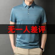 • 宝贝名称: 桑蚕丝短袖T恤男士中年商务休闲体恤冰丝翻领条纹Polo衫爸爸夏装