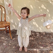 • 宝贝名称: 2021夏季新款韩版女童甜美碎花无袖上衣花边长裤套装黑色圆点套装