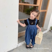 • 宝贝名称: 2021夏季新品女童洋气薄牛仔连体背带裤凉爽可爱袋鼠九分裤1-6岁