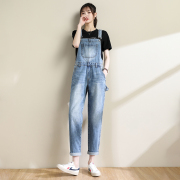 • 宝贝名称: 减龄牛仔背带裤女2021新款春夏韩版潮宽松直筒小个子九分连体裤子