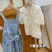 • 宝贝名称: MIAO LAB 媌老板 『奶油小泡芙』甜美洋气蕾丝短袖衬衫女春夏新款