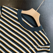 • 宝贝名称: HIGH MOMO 减龄B备~经典黄绿短袖撞色立体感条纹T恤针织衫女春夏