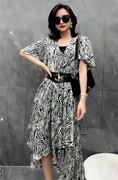• 宝贝名称: 欧货2021年夏季新款法式复古条纹裙女收腰显瘦气质不规则连衣裙女