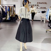 • 宝贝名称: 白色小香风拼边气质针织衬衫女黑色宽松潮流半身裙淑女简约套装潮