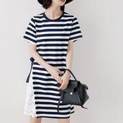 • 宝贝名称: 高端气质2021新款 直筒休闲蕾丝t恤裙夏 条纹连衣裙女夏遮肚长裙