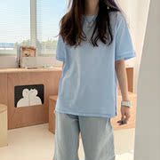 • 宝贝名称: 自制baby蓝t恤短袖女圆领日系温柔风糖果色奶油蓝上衣2021年新款