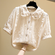 • 宝贝名称: 韩国女装娃娃领蕾丝衬衫短袖雪纺夏季上衣洋气韩版荷叶边百搭小衫