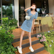 • 宝贝名称: 法式初恋少女可盐可甜泡泡袖牛仔连衣裙夏季vintage裙复古纯欲风