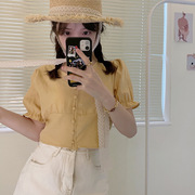 • 宝贝名称: 纯色韩系夏季短款2021百搭小个子设计感衬衫小众v领泡泡袖上衣女