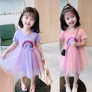 • 宝贝名称: 女童超洋气2岁紫色3公主裙4短袖5T恤拼接彩虹网纱裙宝宝连衣裙子