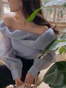 • 宝贝名称: 一见钟情2021夏新品韩版气质超仙露肩雪纺衫长袖一字肩上衣女防晒