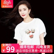 • 宝贝名称: 杨幂明星同款夏季白色短袖t恤小牛印花宽松圆领透气纯棉超火上衣