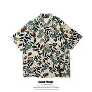 • 宝贝名称: 夏季复古潮牌碎花短袖衬衫男设计感小众沙滩宽松夏威夷花衬衣印花